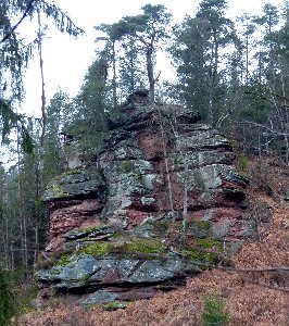 | Fand den Krach und die Perspektive nicht schlimmer als an den übrigen Queichtal-Felsen, was aber möglicherweise auch am Zeitpunkt (Samstagnachmittag/Bundesligastart) gelegen hat. Die meisten Touren kann man durchaus mal klettern, die beiden (kurzen) 7er rechts schauen sogar ganz nett aus. Sonnige Wintertage nutzen - der erwähnte Ameisenhaufen wirkt bedrohlich! |