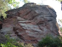 | Super Tour mit tollen Zügen. Wer am 4. Ring nach links klettert (Ruhepunkt etwas außerhalb der Linie) wird aktuell von einem Siebenschläfer begrüßt (an der deutlich gechalkten Kelle). Vorm 5. Ring im Henkelband hat mir ein 0.5er Friend geholfen. |