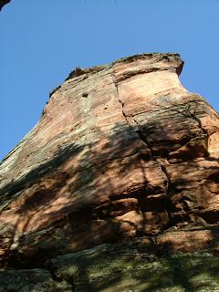Vom Hof nach Westen, rechts über die Zeltwiese und hinauf zum Fels.