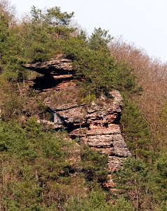 | Im Führer mit 5 bewertet ... aber: probierts mal selbst aus. Trotz Sanierung sehr moosig und flechtig, sichtbares Gestein dafür meist bröselig. Am 1. Ring muss man sich ganz schön anstrengen - als ich ihn auf Bauchhöhe hatte, konnte ich ihn endlich klippen. Rest ist Gehgelände. |