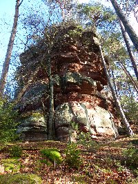 | Der Einstiegskamin ist der leichteste Weg zum Wandbuch (als Info für alle wandernden Gipfel/Wandbuchsammler). Der Anmarsch durch das ganze Dickicht zum Fels ist allerdings lästig. Machete einpacken oder den Winter abwarten sei empfohlen. |