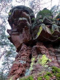 Am Südhang der Hohen List östlich von Eppenbrunn, 200m südlich vom Christkindelsfels. Begehbar (Geländer).