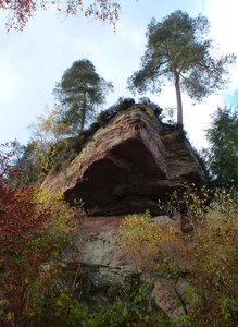 Von der Wappenschmiede an der K32 (unweit gegenüber vom Fischerfels) nicht über den untersten, sondern den nächsten Weg ca. 1,5km nach Osten bis um einen Bergkamm. Unmittelbar danach wird rechterhand der Fels sichtbar.