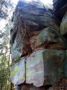 Von der Gräfensteinhalle (nördlicher Ortsrand) auf breitem Weg ca. 350m nach Nordwesten, rechts ab und bei Weggabelung linkshaltend auf Lichtung. Über sie und auf dem Bergrücken weiter zum Fels.